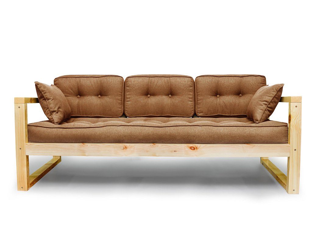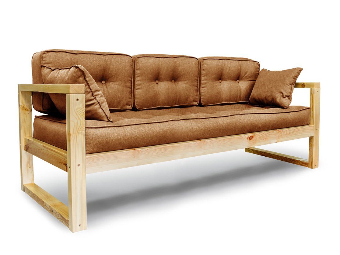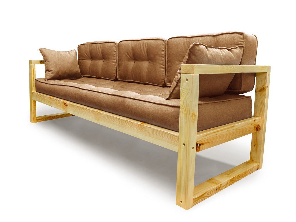 Диван изготовлен из массива сосны, выдерживает максимальную нагрузку до 140кг, рассчитан на трёх человек.