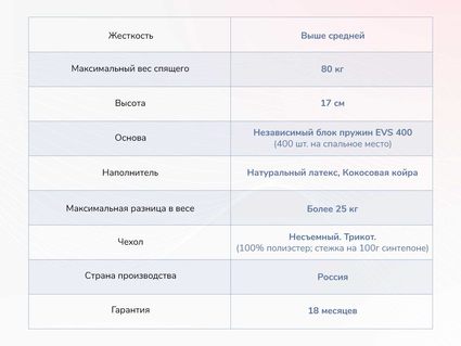 Спальную поверхность представляет пара натуральных наполнителей. Латекс и кокос – классические компоненты для качественного и удобного матраса.