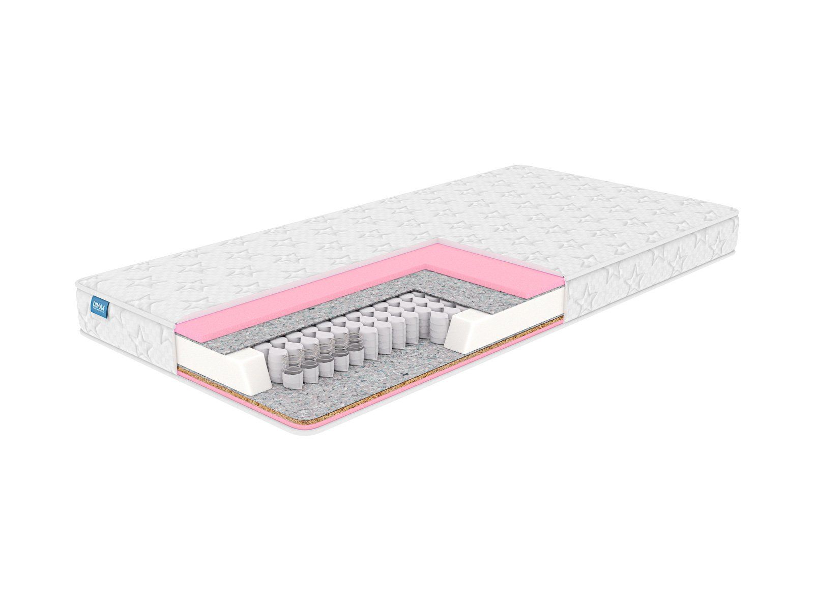 Димакс Галактика – это удобный детский матрас с двухсторонним наполнением, который по мере роста и взросления ребёнка можно переворачивать и менять уровень жёсткости. Одна сторона обладает более высокой жёсткостью, вторая — мягкая и упругая. В основе лежит компактный и прочный независимый блок пружин, отвечающий за правильную поддержку позвоночника.
