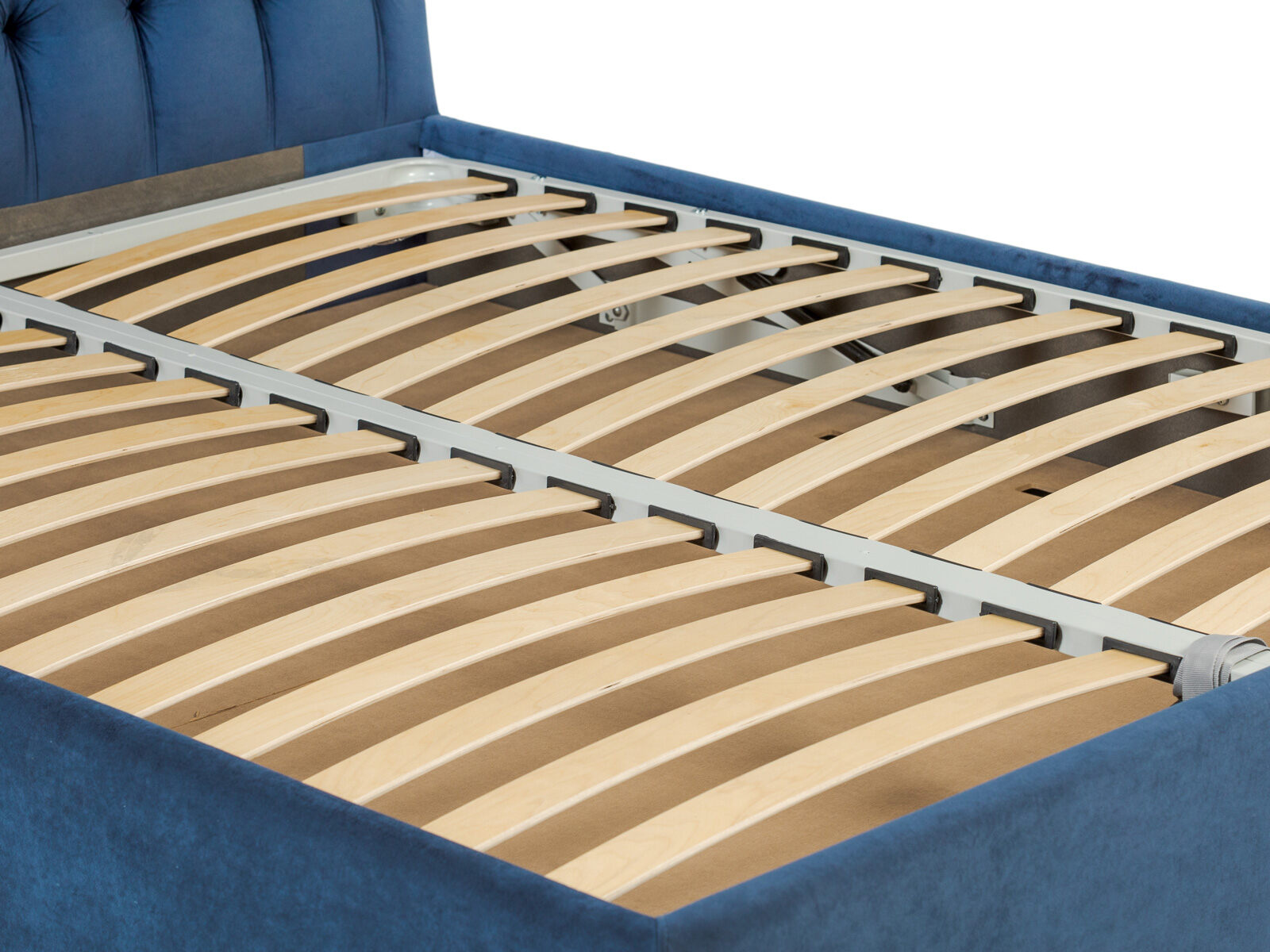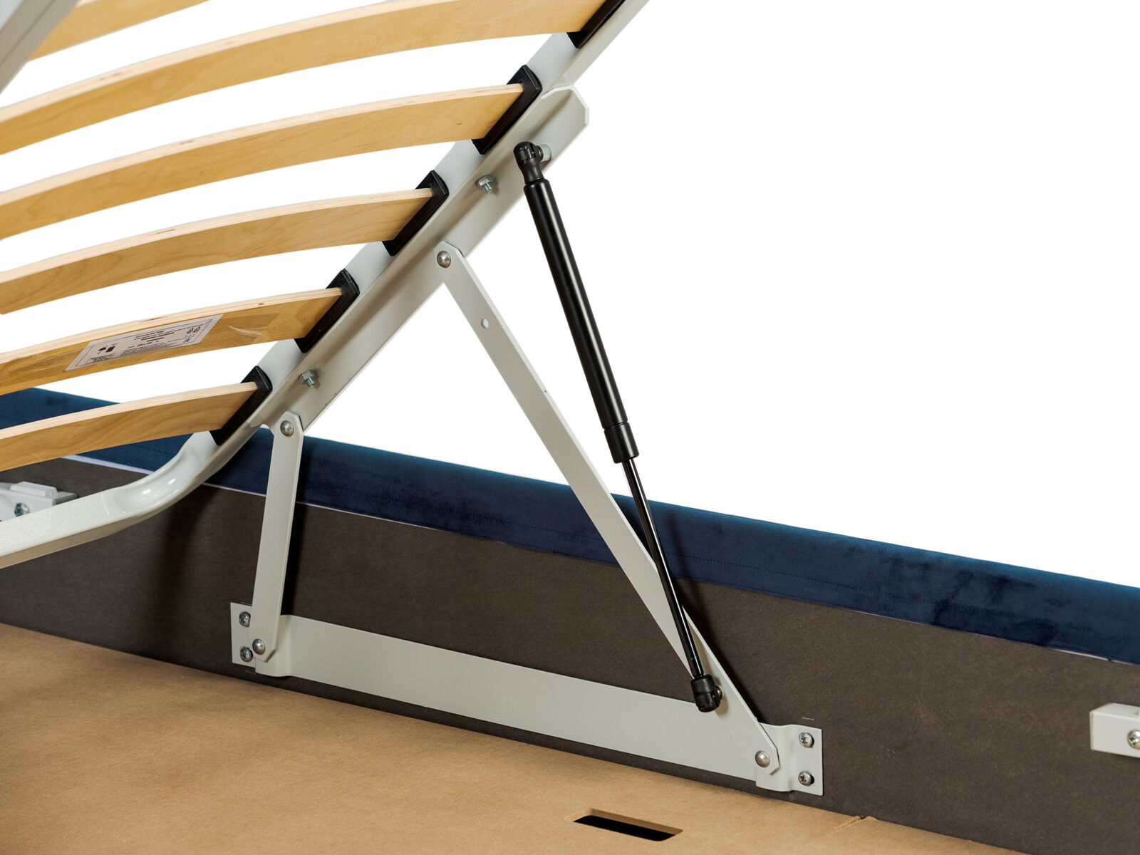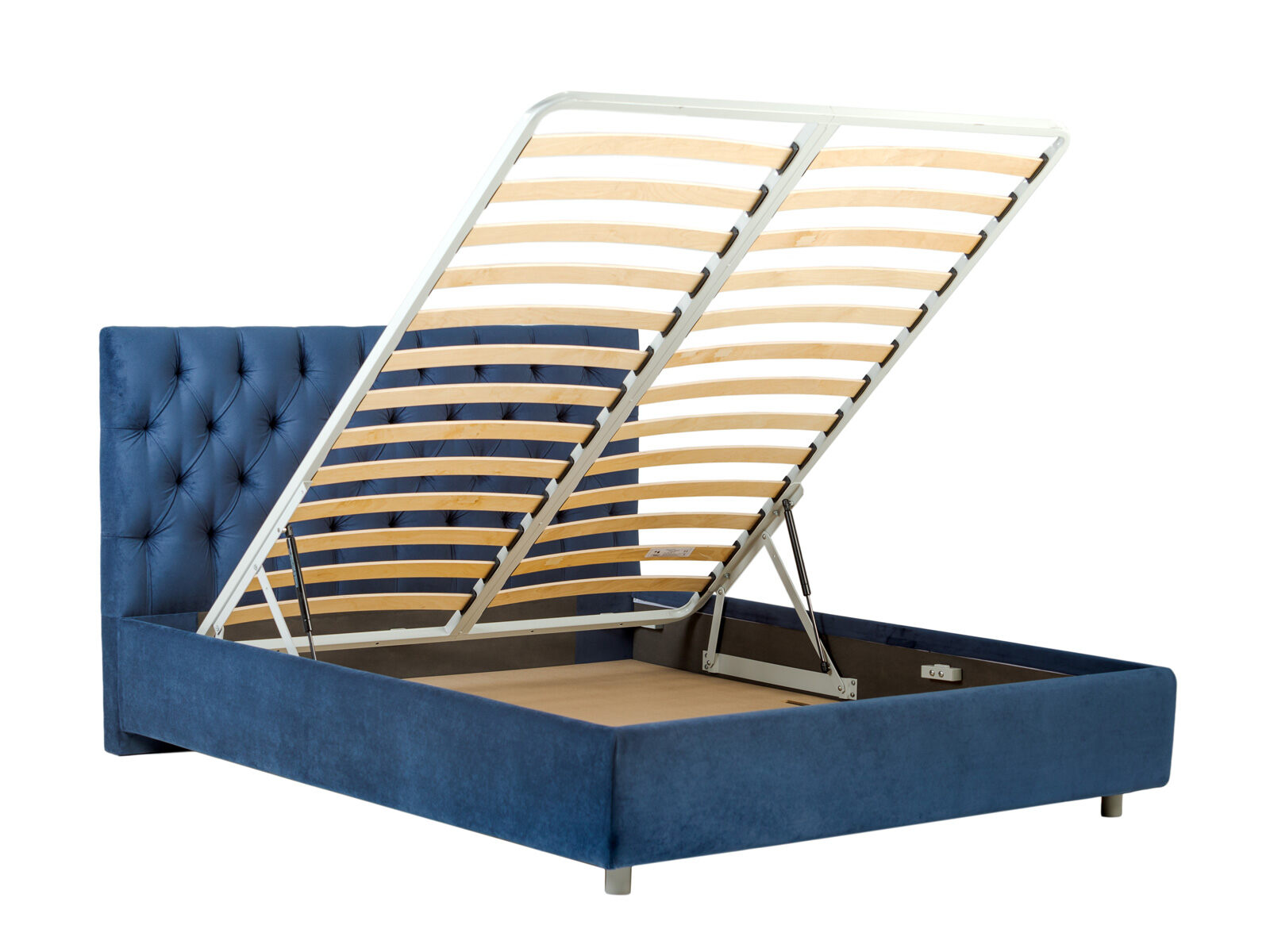 Кровать оснащена основанием с подъемным механизмом, под которым располагается бельевой ящик глубиной 14 см. Рекомендуемая высота матраса от 13 см, вес матраса до 50 кг. Чехлы на царгах несъемные. Высота/толщина царг: 29 см / 4 см.