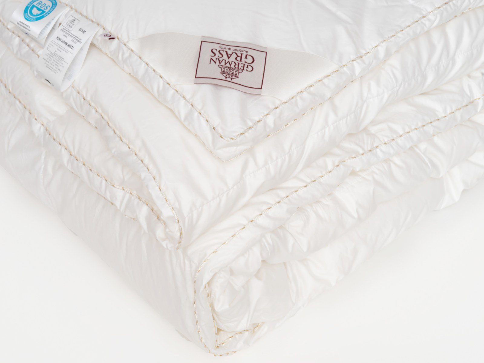 Немецкий хлопковый сатин высочайшей плотности соткан из тончайших нитей (Premium Satin – Nе 200/200 485 ТС) и прошел финишную обработку SanProCare® Sensitive, обеспечивающую усиленную гигроскопичность и придающую ей «пуховую мягкость». Особо тонкий, мягкий и «нешуршащий» чехол обладает повышенной износостойкостью и предотвращает проникновение пылевых клещей внутрь изделий. Наполнителем служит пух высочайшего качества, отобранный на гусиных фермах Сибири, которая, по утверждению биологов, является зоной проживания гусей, носящих пух максимально больших размеров, что, безусловно, влияет на пуховую массу положительно и наполнитель имеет повышенный коэффициент упругости (Fill Power), достигающий значений в 850 ед.