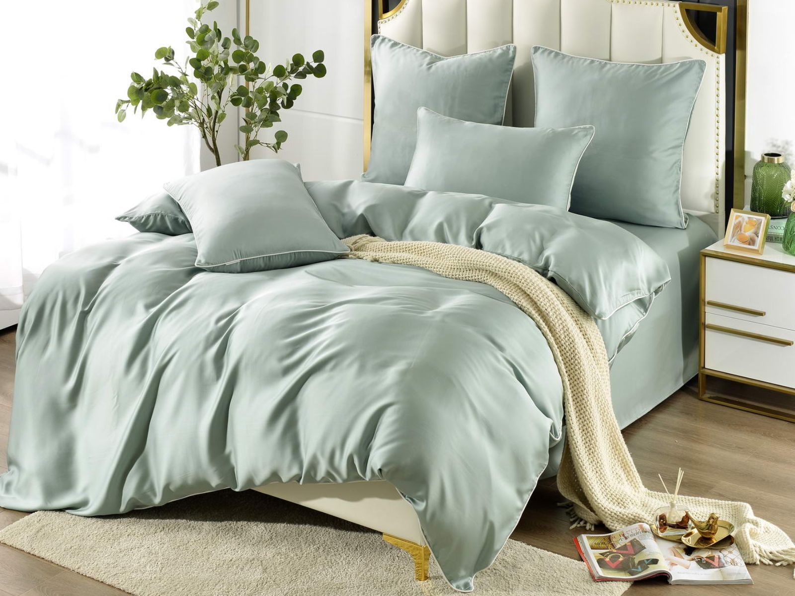 Тенсел – это натуральная ткань из эвкалиптового волокна. На ощупь тенсел напоминает шелк – он такой же легкий и гладкий. Постельное бельё из такой ткани обладает хорошей терморегуляцией, поэтому его можно использовать в любое время года – не будет жарко или холодно. На данный момент, тенсел пользуется большой популярностью во всем мире.