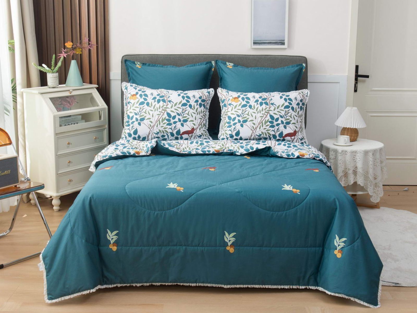 Набор с одеялом прослужит вам достаточно долго без потери своего качества, а рисунок не потускнеет даже после стирок. Комплект легко стирается в обычной машине и также легко гладится.