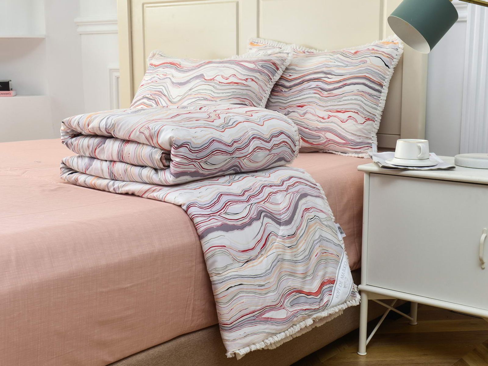 Особенность: кант на одеяле и наволочках декорирован бахромой.