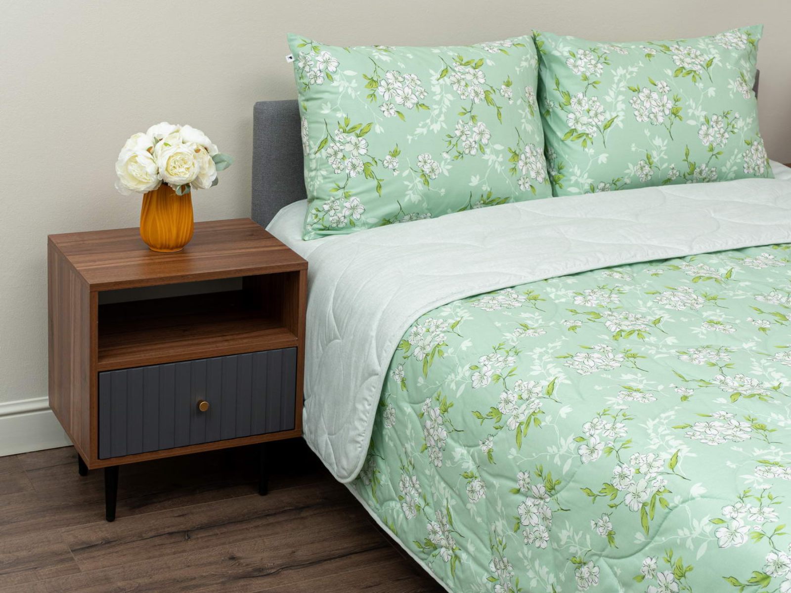 Комплект Мелвин легко стирается в обычной машине в бережном режиме и также легко гладится.