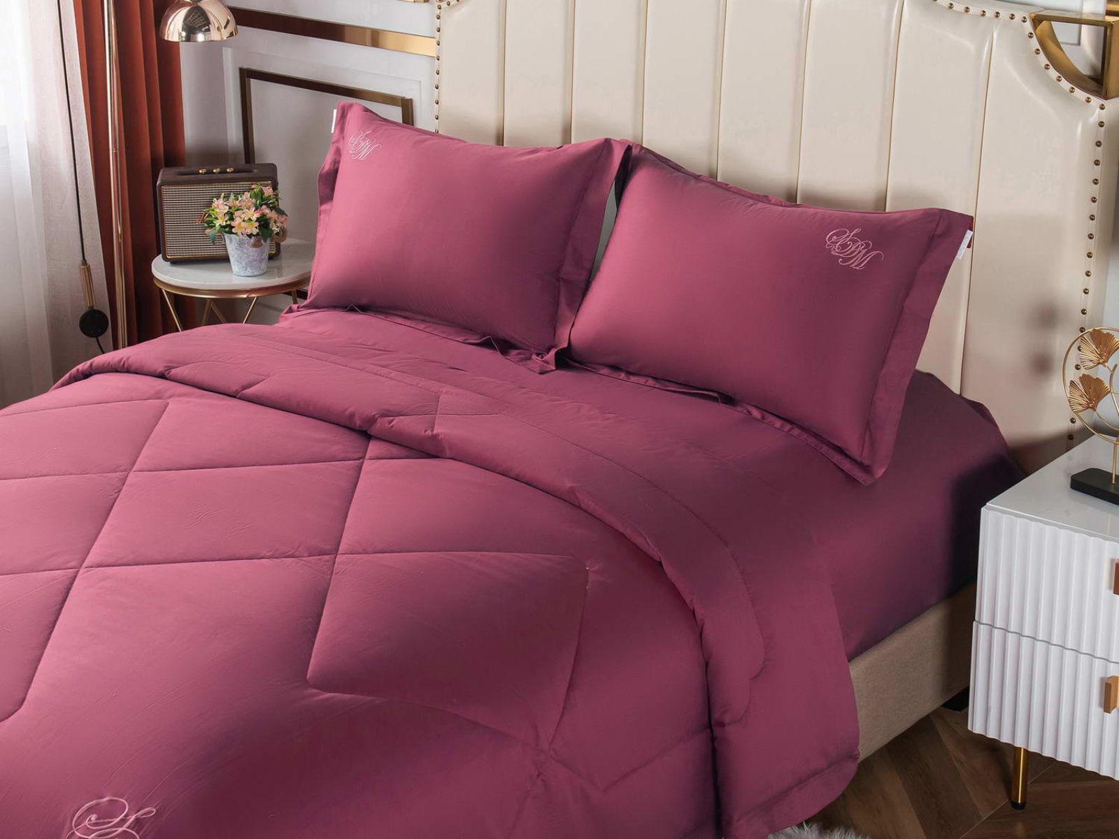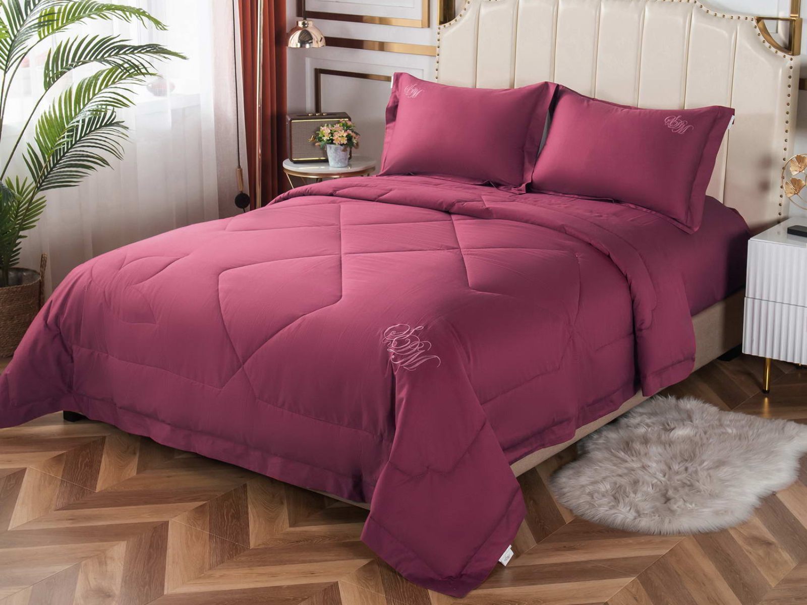 Элегантные комплекты постельного белья с одеялом премиум класса из нежной, натуральной ткани макосатин Нельсон. Этот материал обладает рядом важных качеств: он прочный, но мягкий, гладкая поверхность придает постельному белью красивый внешний вид. Натуральная ткань не вызывает аллергии и раздражения, такое постельное белье приятно использовать в любое время года, и в жару, и в холод.