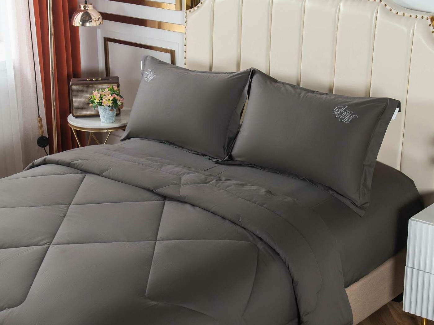 Элегантные комплекты постельного белья с одеялом премиум класса из нежной, натуральной ткани макосатин Нельсон. Этот материал обладает рядом важных качеств: он прочный, но мягкий, гладкая поверхность придает постельному белью красивый внешний вид. Натуральная ткань не вызывает аллергии и раздражения, такое постельное белье приятно использовать в любое время года, и в жару, и в холод.