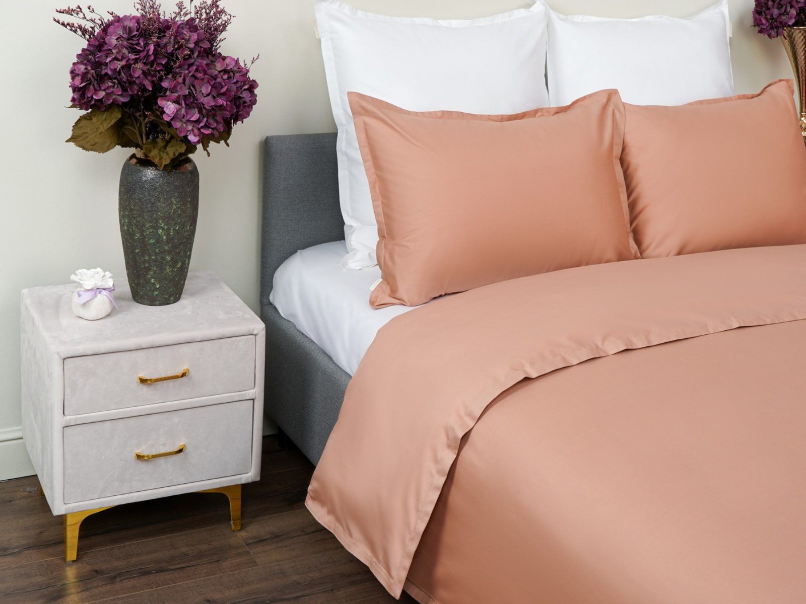 Особенность: наволочки и пододеяльник с ушками 2 см по периметру, пододеяльник на пуговицах;