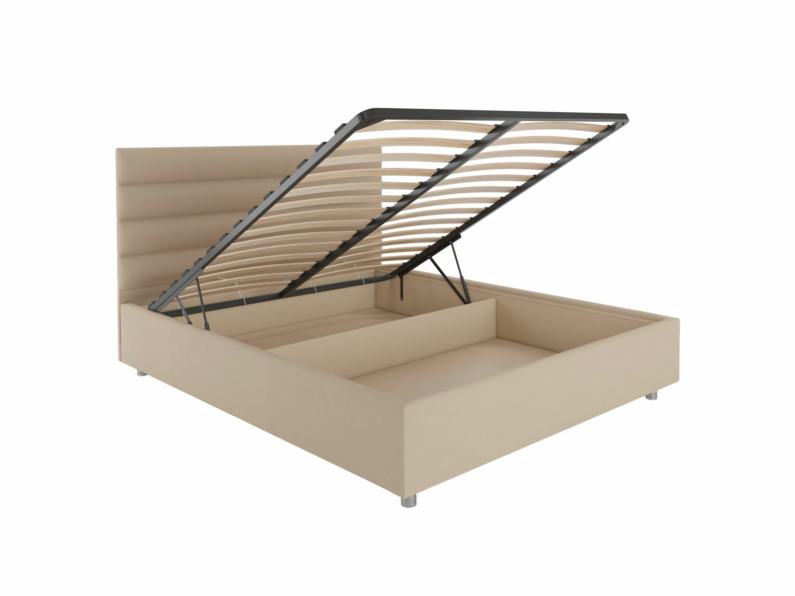 В комплектации с подъемным механизмом кровать имеет вместительный бельевой короб с двумя отделениями.