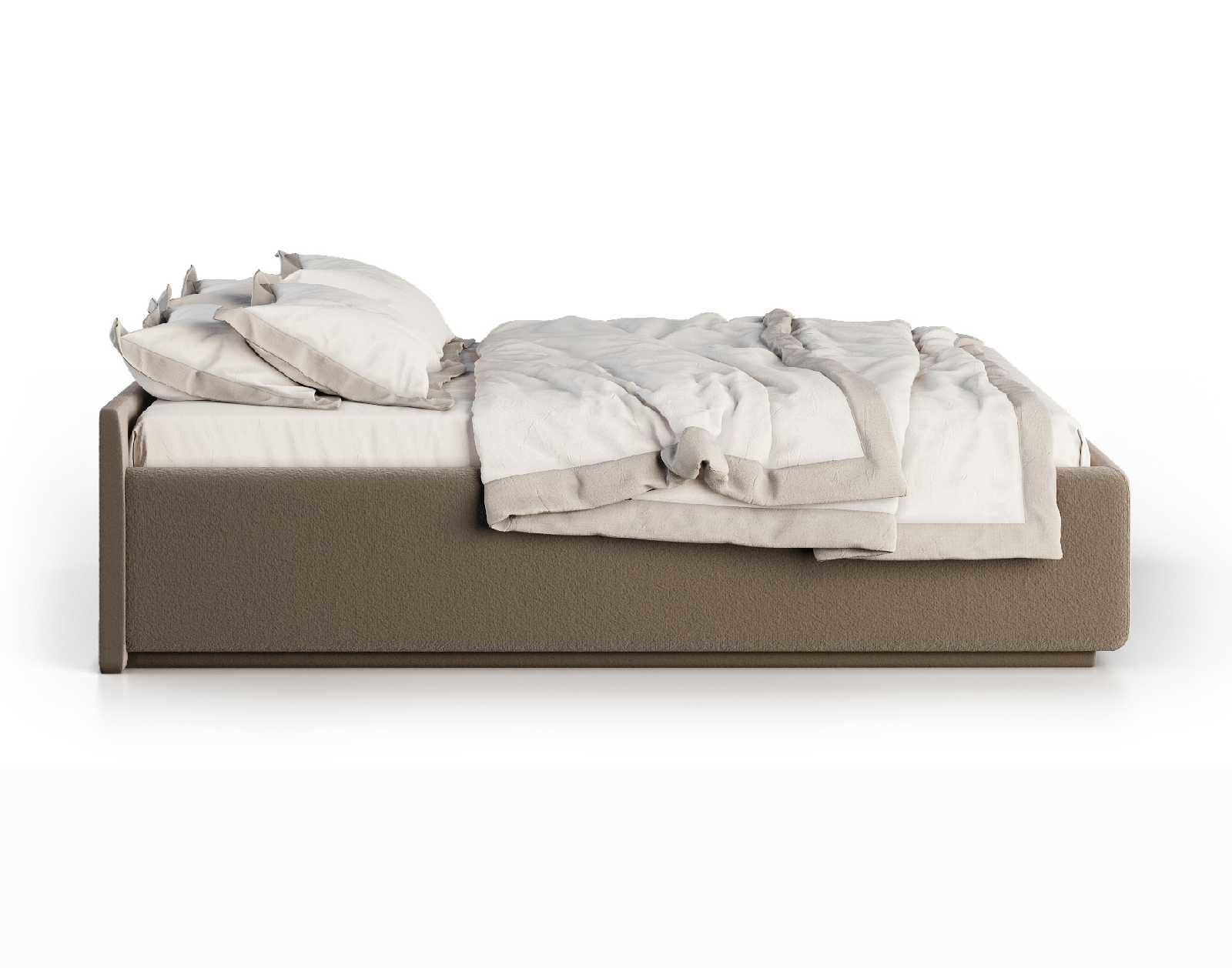 Кровать укомплектована IQ с подъемным механизмом и ящиком для белья без дна (дополнительная платная опция - дно к ящику IQ из HDF (ХДФ). Каркас кровати на цоколе, декоративный чехол на цоколе съёмный. Глубина ящика для белья - 30 см, без ограничения нагрузки на ящик.