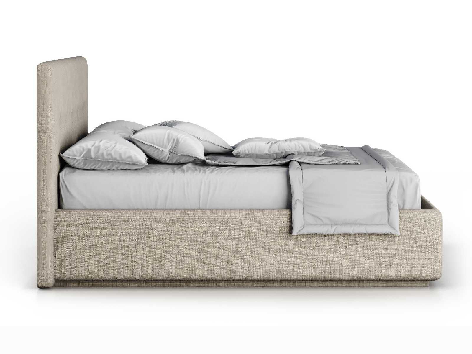Кровать укомплектована IQ с подъемным механизмом и ящиком для белья без дна (дополнительная платная опция - дно к ящику IQ из HDF (ХДФ). Каркас кровати на цоколе, декоративный чехол на цоколе съёмный. Глубина ящика для белья - 30 см, без ограничения нагрузки на ящик.