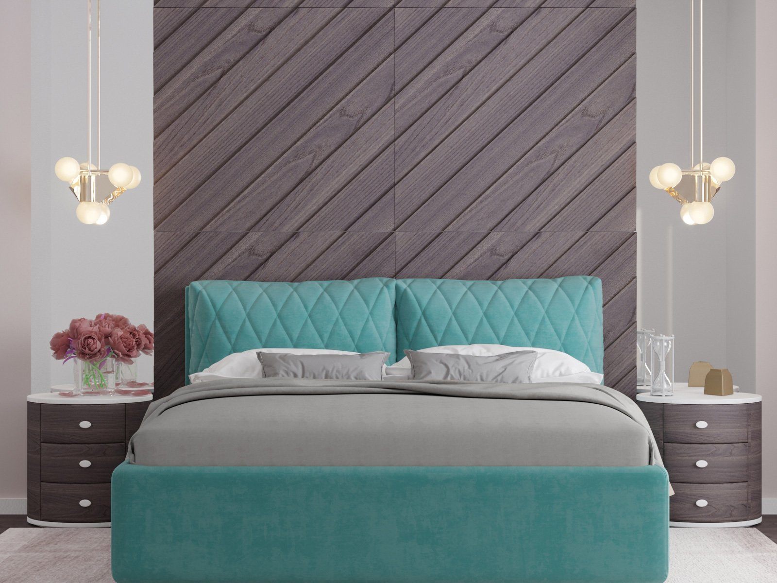 Модель Celeste от Nuvola — современная интерьерная кровать с оригинальным мягким изголовьем, декорированным двумя объемными подушками, которые с легкостью можно отстегнуть от изголовья для перемещения или приподнять на матрас для изменения угла наклона подушки — высокий уровень комфорта и поддержка спины во время чтения книг, просмотра любимых фильмов или работы за ноутбуком!