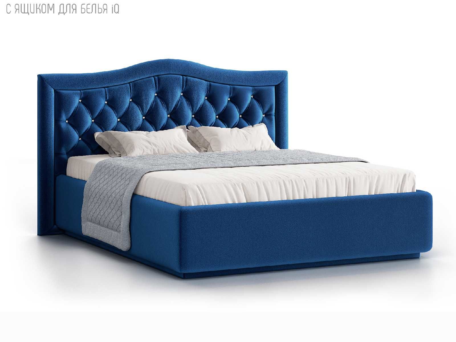 Кровать укомплектована IQ с подъемным механизмом и ящиком для белья без дна (дополнительная платная опция - дно к ящику IQ из HDF (ХДФ). Каркас кровати на цоколе, декоративный чехол на цоколе съёмный. Глубина ящика для белья - 30 см, без ограничения нагрузки на ящик.