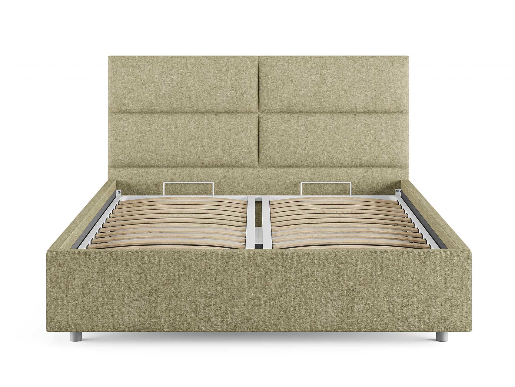 Кровать комплектуется металлическим основанием и подъемным механизмом со вместительным бельевым ящиком. Дно бельевого ящика легко сдвигается для обеспечения уборки под кроватью.