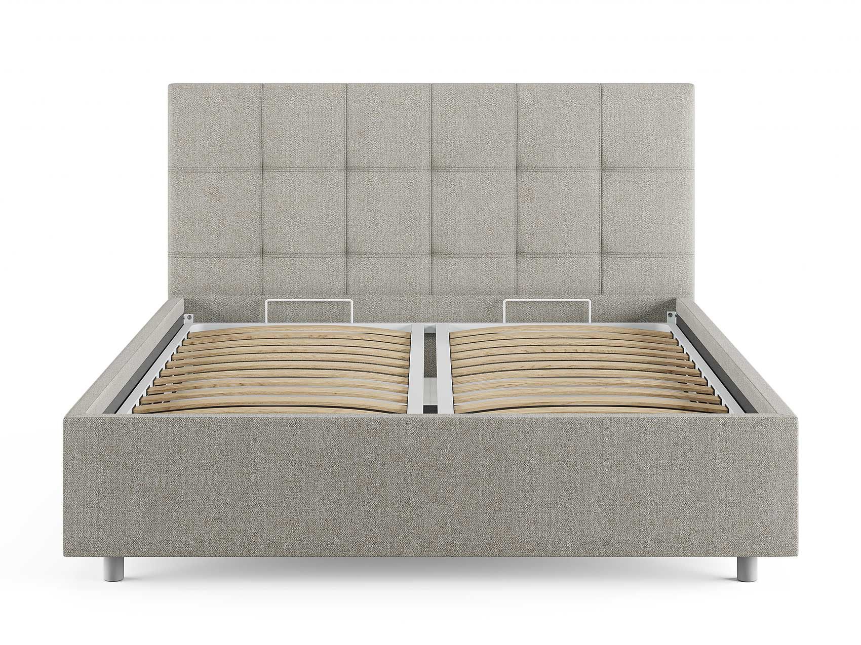 Кровать комплектуется металлическим основанием и подъемным механизмом со вместительным бельевым ящиком. Дно бельевого ящика легко сдвигается для обеспечения уборки под кроватью.