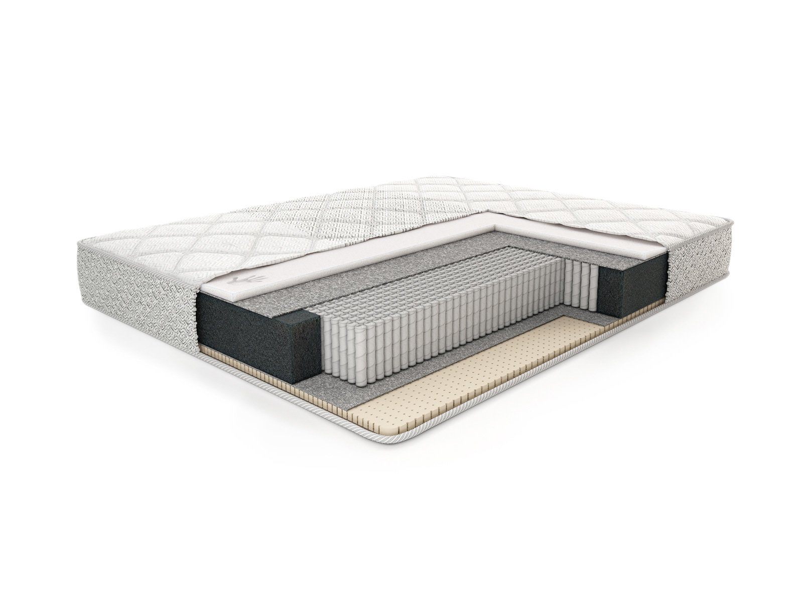 Сердцем матраса выступает пружинный блок, построенный на независимых пружинах. Их количество на спальное место составляет около 1000. Благодаря высокой концентрации отзывчивых спиралей матрас не только более качественно распределяет вес, но и получает возможность точечной ортопедической поддержки.