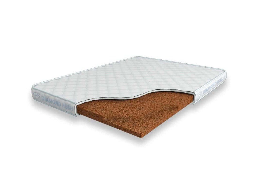 Матрас Diamond Rush Solid Cocos 6 DR является беспружинным, т.е. не имеет в своей основе пружинного блока. В его состав входят один или несколько слоев латексированной кокосовой койры. Это один из самых жестких материалов. Матрас, выполненный целиком из кокосовой койры, в меньшей степени обладает анатомическим эффектом.
