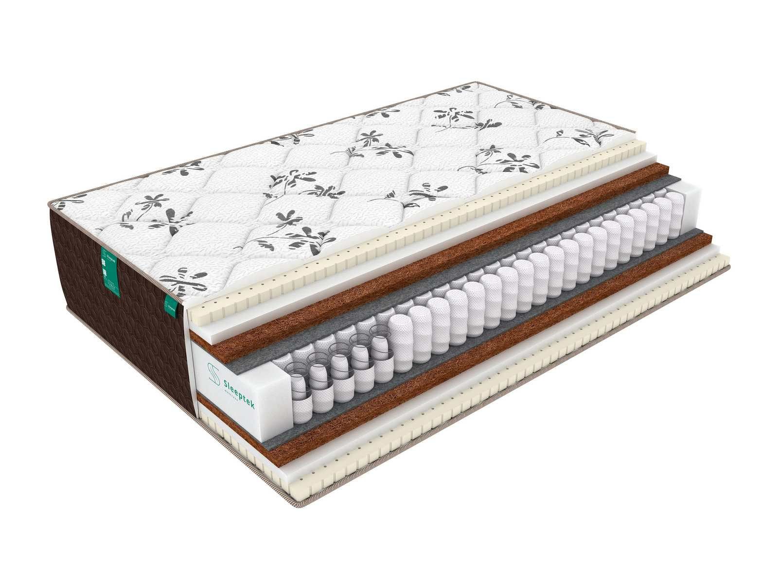 Койра – жесткий волокнистый материал – усиливает ортопедические качества пружинного блока и улучшает состояние позвоночника. Натуральный и искусственный латекс способствуют оптимальному кровообращению, придают матрасу комфорт и делают сон здоровым и крепким.