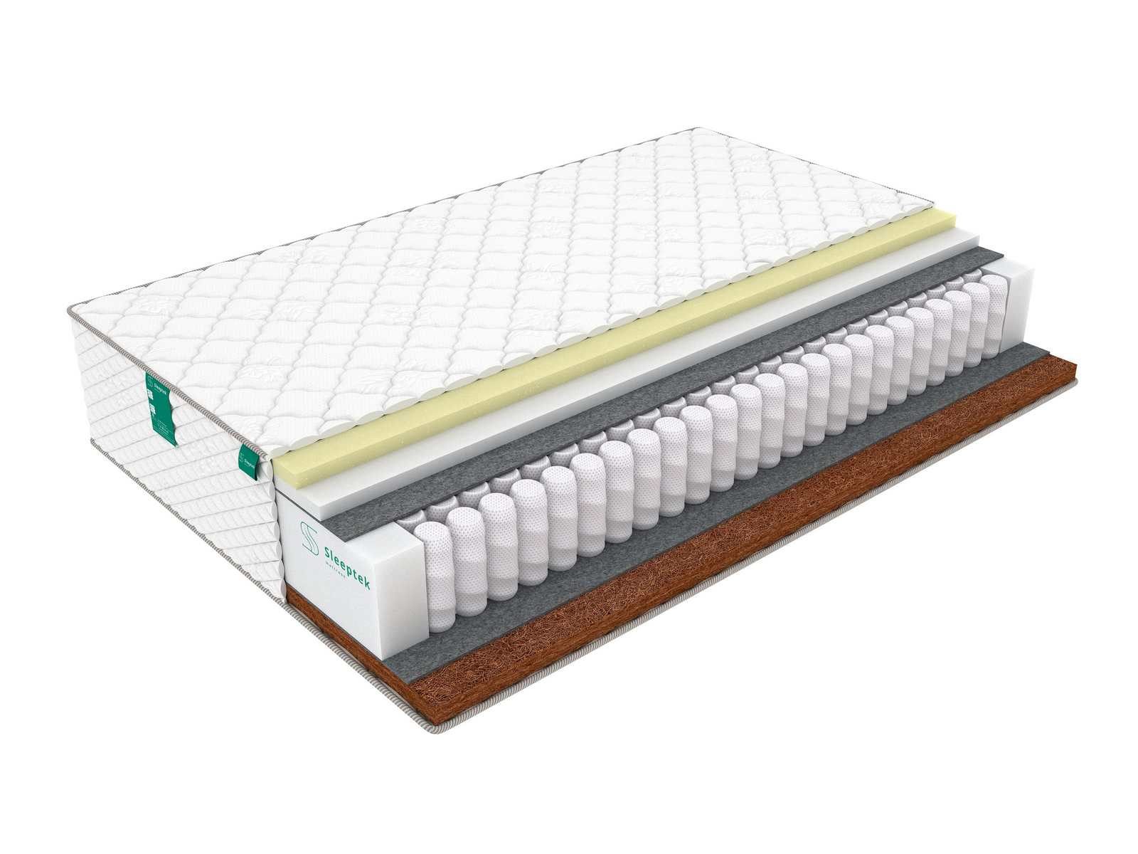 Жесткая сторона матраса представлена койрой кокоса – натуральным волокнистым наполнителем, усиливающим ортопедические качества блока пружин. Койра хорошо вентилируется и является полностью гипоаллергенной.
