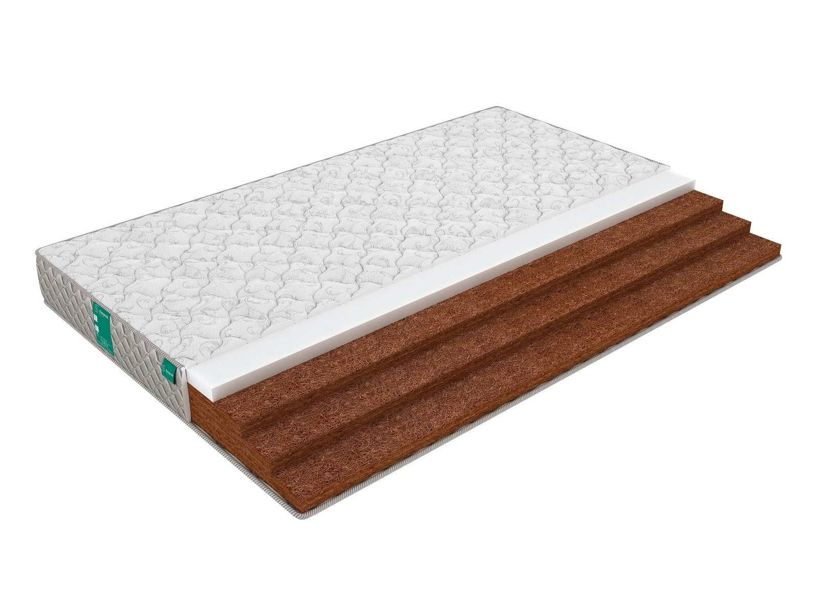 Беспружинный матрас Total Foam3 Cocos9, наполнителями которого служат кокосовая койра и ортопедическая пена. Стороны этой модели имеют различную жесткость. Одна сторона – средняя, она представлена ортопедической пеной. Вторая – жесткая, она проложена койрой кокоса.