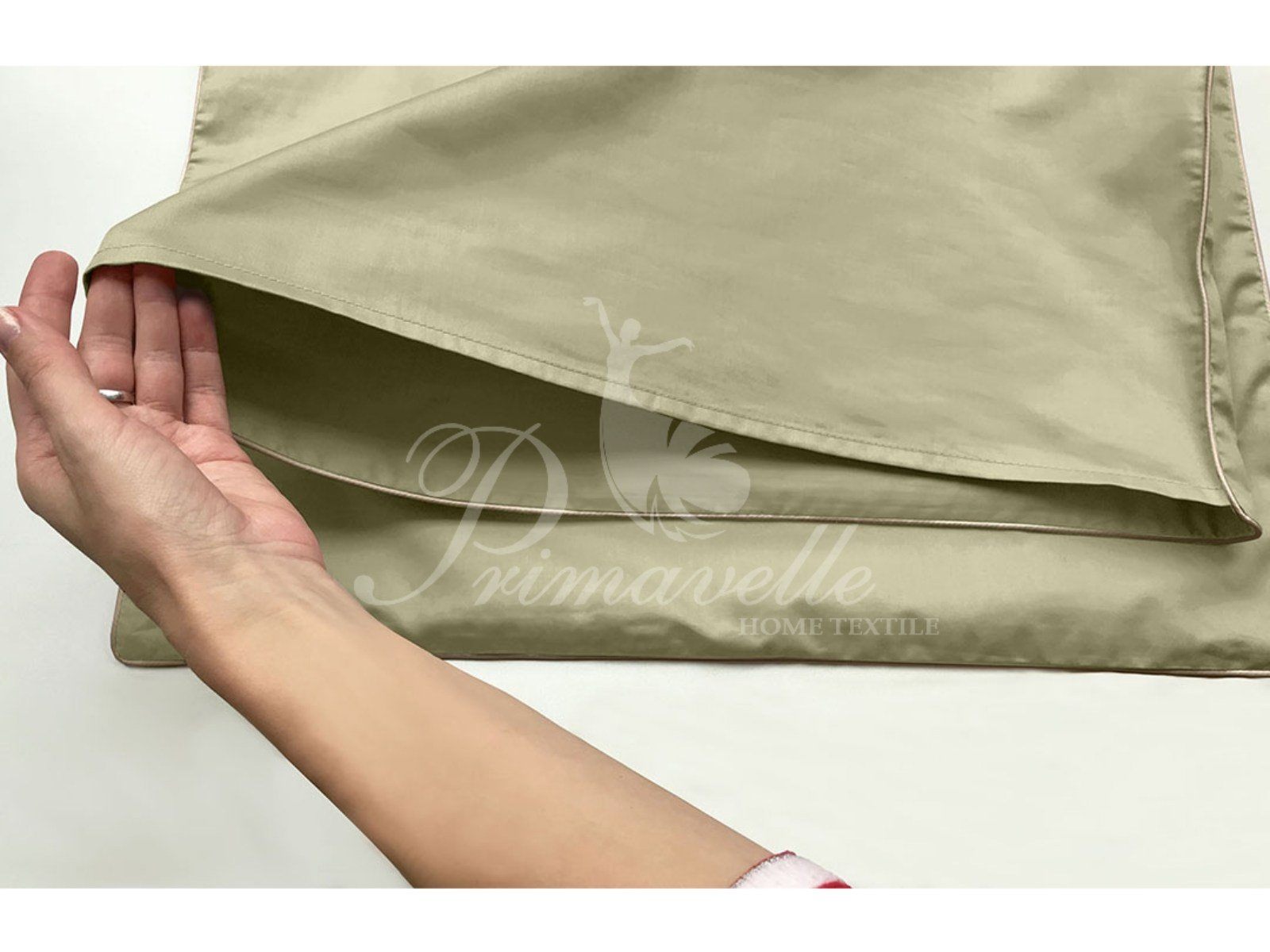 Наволочка имеет удобный клапан и украшена декоративным кантом по периметру. Спокойный и деликатный светло-оливковый оттенок создаст атмосферу умиротворения и полного релакса в Ваше спальне.