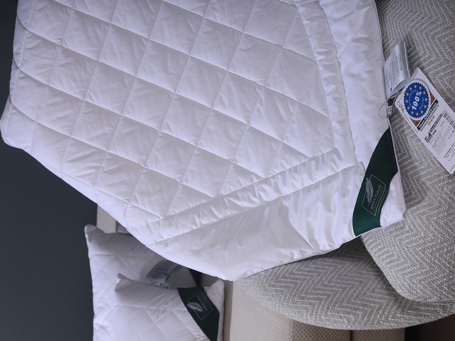 Атласный кант серебряного цвета подчеркивает белизну благородного хлопкового сатина и является отличительной особенностью изделия, придающей ему роскошный вид.