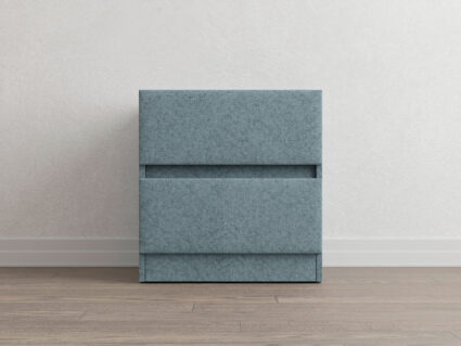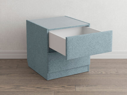 Тумба Omega выполнена в современном стиле. Прямые линии, отсутствие ручек и просвета от пола, делают ее универсальной, позволяя комплектовать тумбы с кроватями, имеющими лаконичное современное изголовье. Два выдвижных ящика с направляющими скрытого монтажа оснащены доводчиками. Задняя стенка выполнена из ДСП и обита спанбондом, что делает тумбу устойчивой и прочной. Тумба имеет скос под плинтус, что позволяет устанавливать ее вплотную к стене. Тумбу дополнительно можно укомплектовать стеклянной столешницей. Широкий выбор фактур и цветов исполнения.