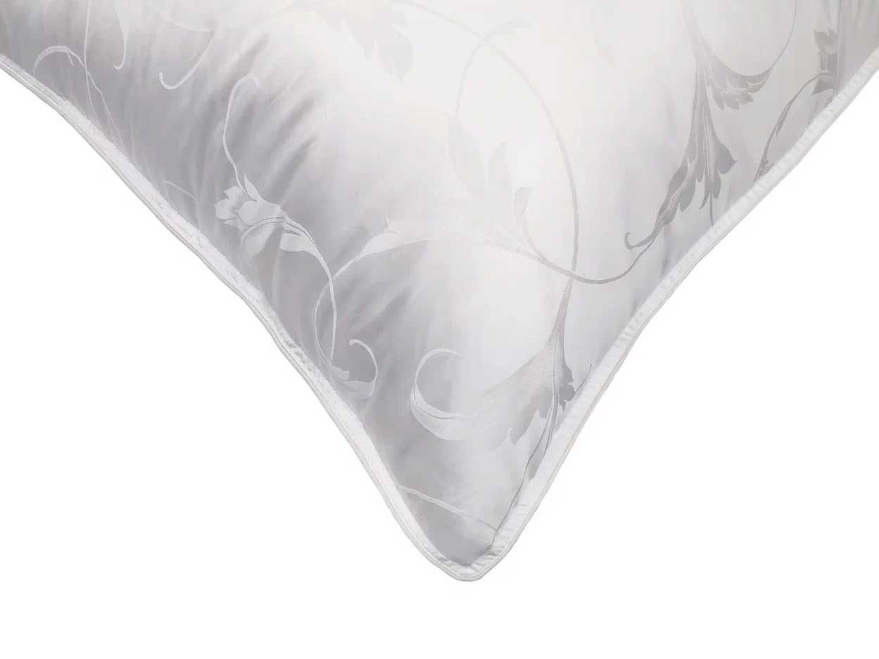 Изысканное сочетание нежнейшей шелковой ткани (satin-jacquard) и высококачественного белого гусиного пуха создает неповторимый шедевр - легкую и воздушную пуховую подушку Monferrat.