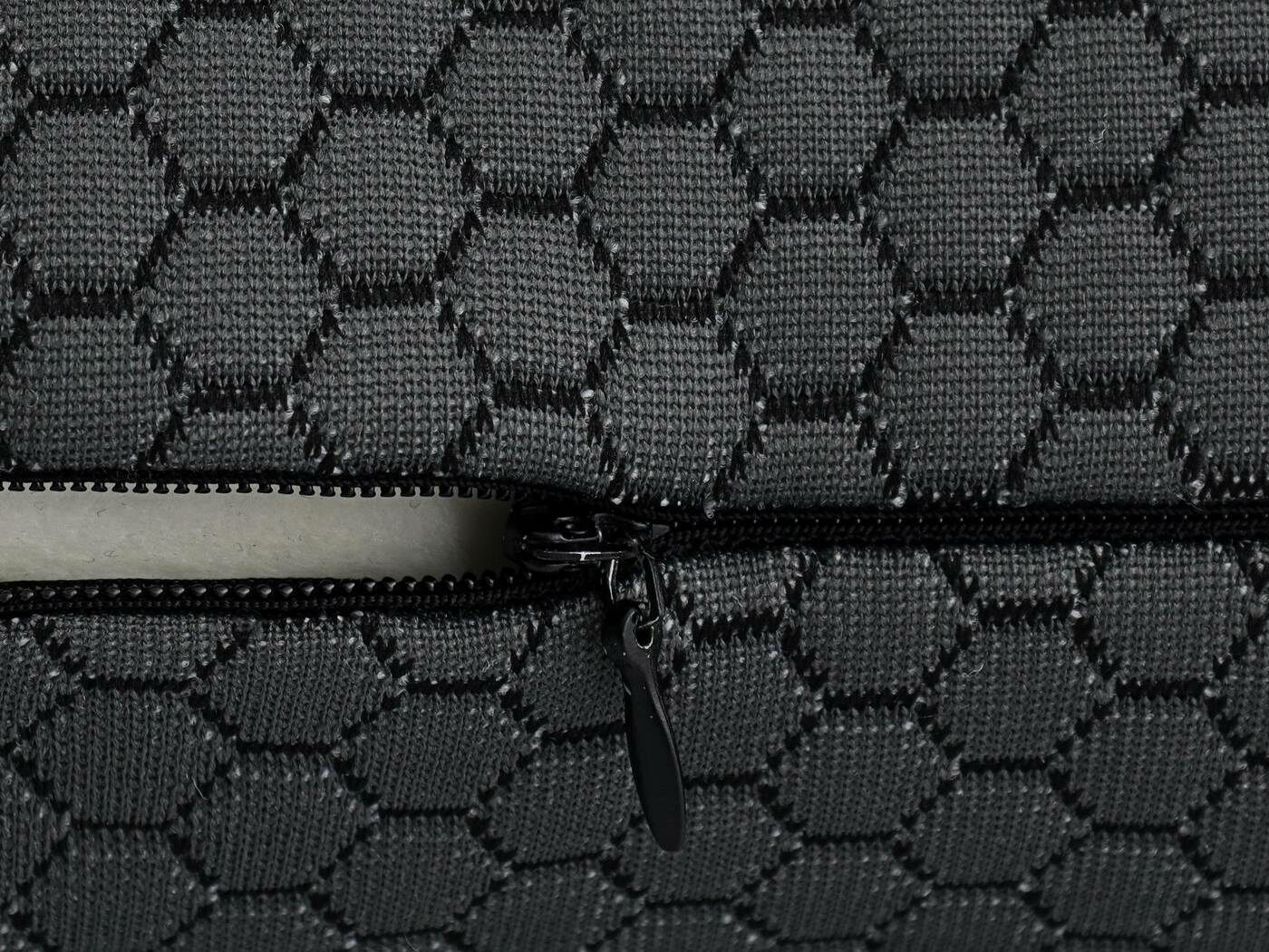 Пошив: ортопедическая форма + съемный чехол на молнии, декорированный кантом по периметру.
