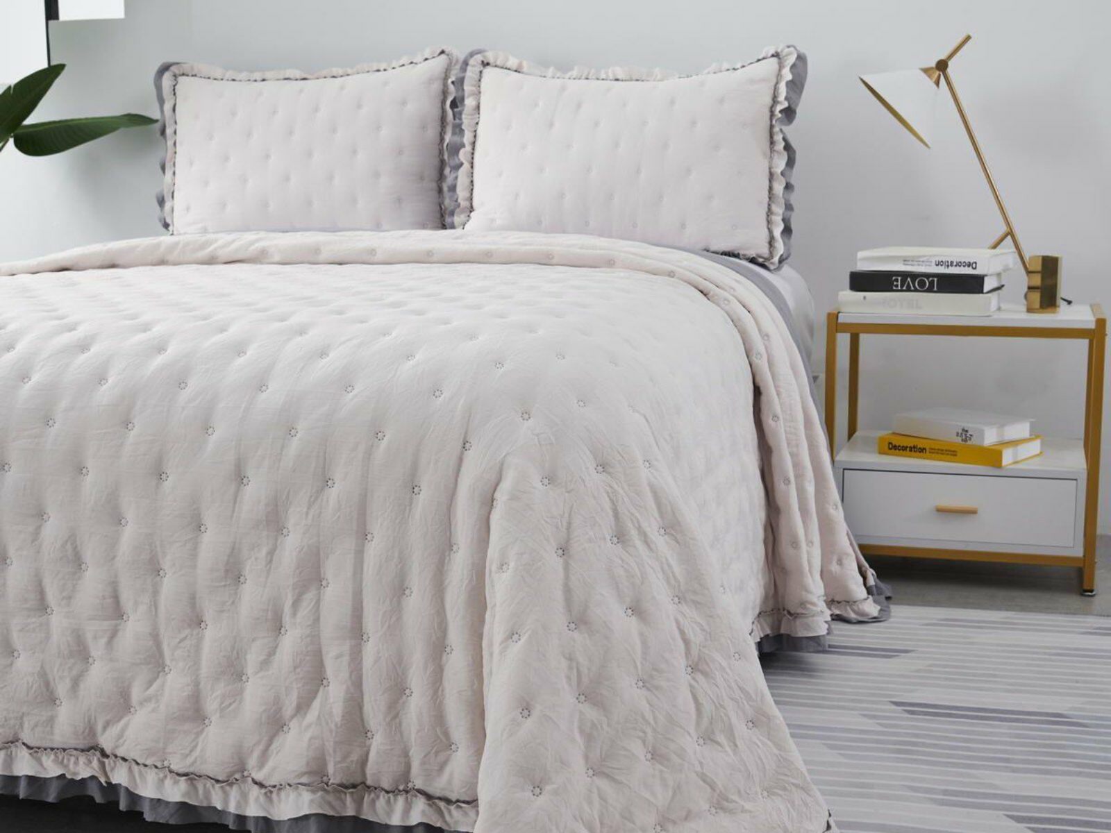 Покрывала выполнены в десяти оттенках, они подойдут для различных интерьеров, объединяет коллекцию потрясающее качество и приятный внешний вид. Изделия декорированы рюшами по краю, что подчеркивает из красоту и изысканность.