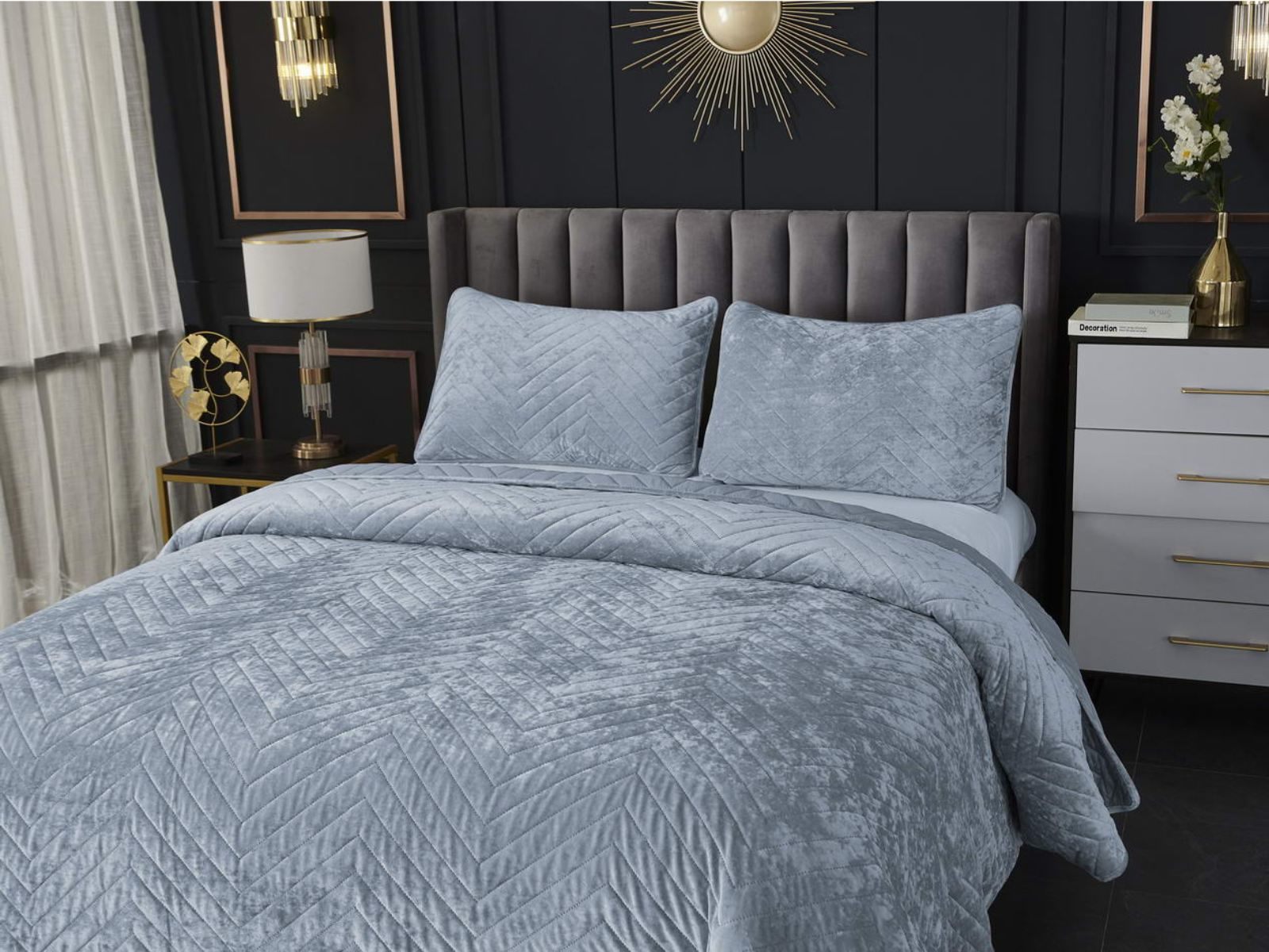 Покрывала Фернанд выглядят как будто сошли с картин, изображающих королевские покои. Бархатную ткань начали изготавливать еще в Средние века, её использовали в оформлении дворцов и изготавливали плащи и головные уборы для знати. Теперь и вы можете прикоснуться к этой роскоши! Бархатная текстура приятная на ощупь, а из-за особого плетения ткани, игра света на ней выглядит благородно. Поэтому покрывало Фернанд создаст необычайно уютную атмосферу в вашей спальне. Цветовая гамма разнообразна и включает восемь благородных оттенков: капучино, бежевый, изумруд, горчичный, терракотовый, пепельная роза, серый, стоун. За покрывалом Фернанд легко ухаживать: стирка при температуре 30 градусов, вручную или в машинке. Важно хорошо просушить изделие! При правильном уходе вещь прослужит долгие годы не потеряв форму и цвет.