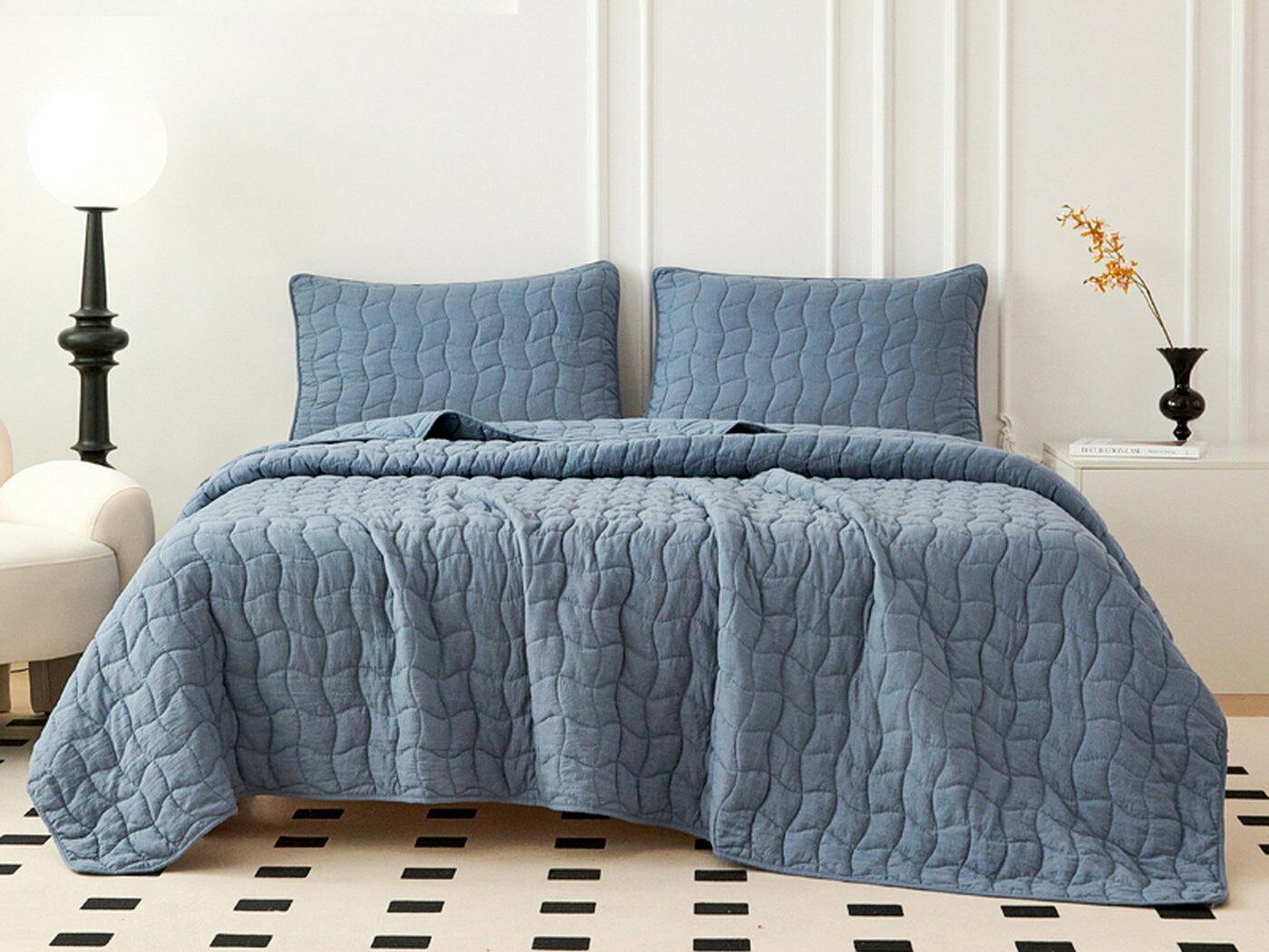Покрывала и наволочки выполнены с кантом. Стежка двойной нитью под цвет покрывала.
