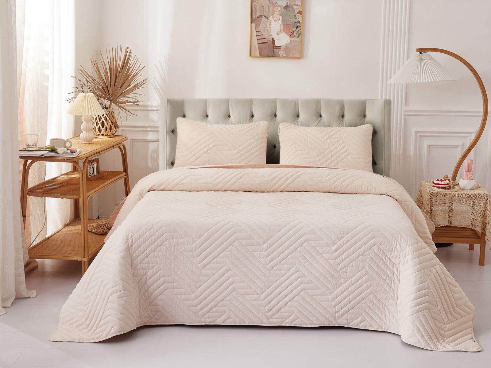 Покрывала Мориц украшены лаконичным геометрическим орнаментом. Сочетание углов и линий органично впишется в самые разнообразные интерьерные стили. Покрывала выполнены в восьми оттенках: крем, пудра, антрацит, бежевый, серый, шоколад, терракот, синий. Такая цветовая гамма не оставят никого равнодушным.