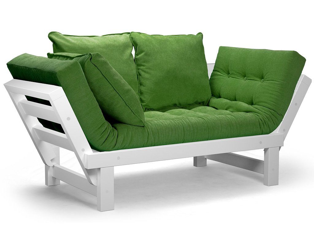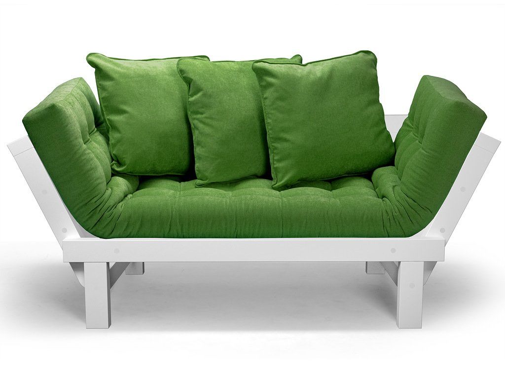 Каркас кушетки изготавливается из натуральных материалов (массив сосны). В комплекте с каркасом идут матрас, две приспинные подушки. Откидные подлокотники имеют два положения, что позволяет с удобством, разместится двум человекам.