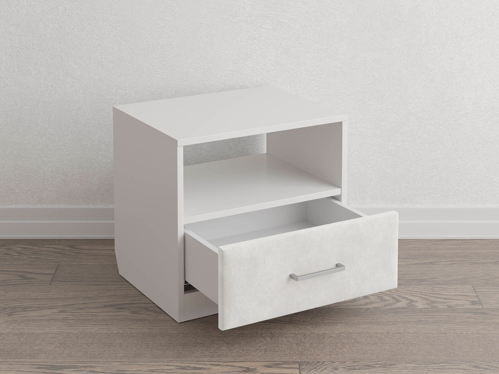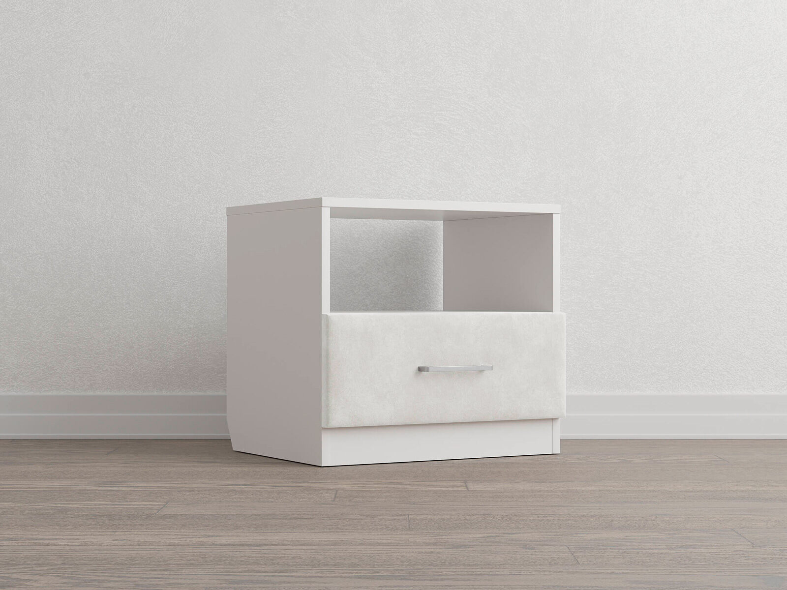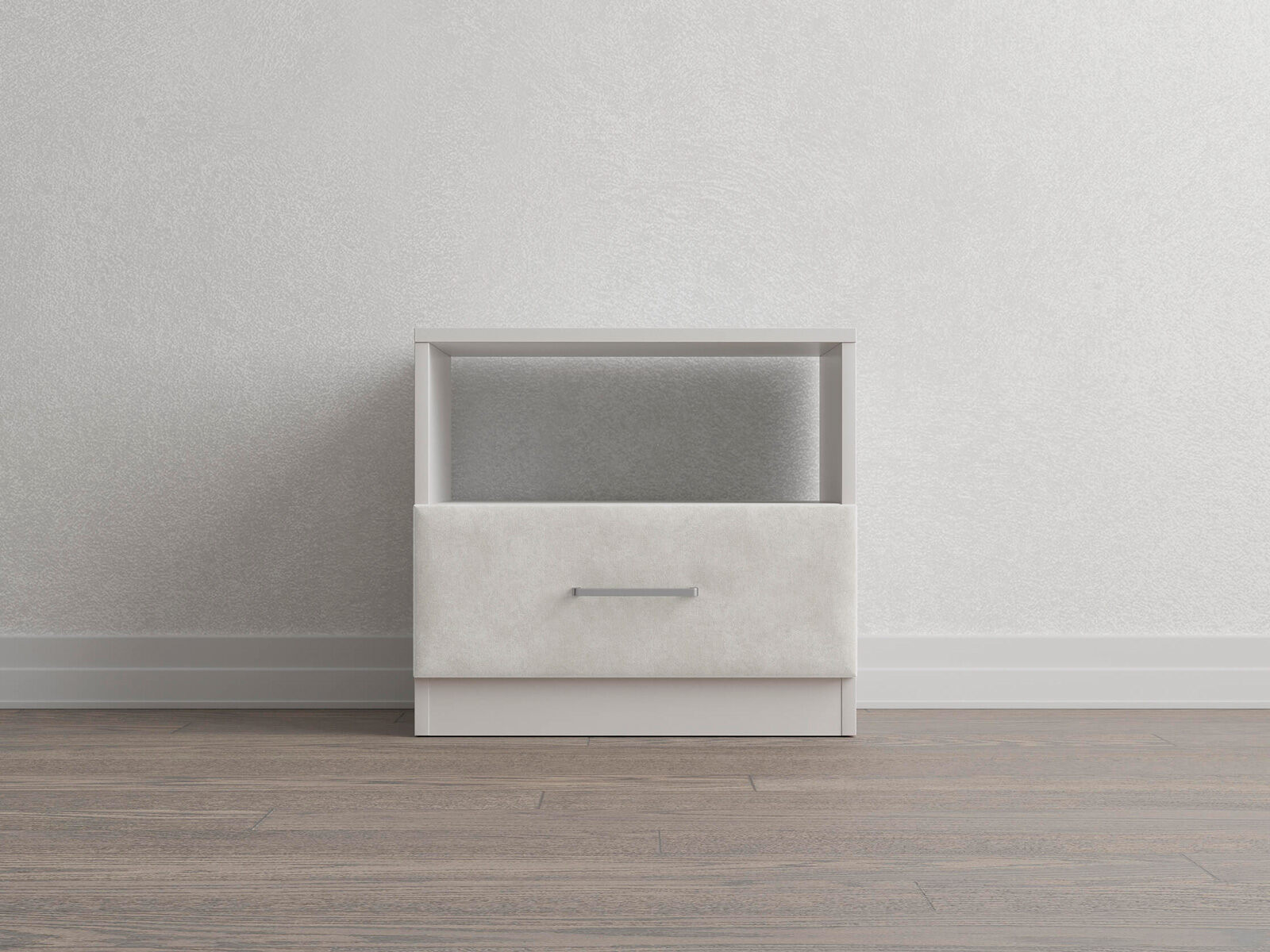 Элегантная комбинированная тумба, сочетающая в себе лаконичность ЛДСП и уют мягких фасадов ящиков, обтянутых тканью. Конструкция тумбы предусматривает открытую нишу для мелочей и вместительный выдвижной ящик с направляющими скрытого монтажа и доводчиками. Корпус из ЛДСП гарантирует долговечность и устойчивость к механическим повреждениям, а мягкие фасады в ткани и изящные металлические ручки добавят уют. Большое разнообразие текстур и цветовых решений для гармоничной интеграции в любой интерьер.