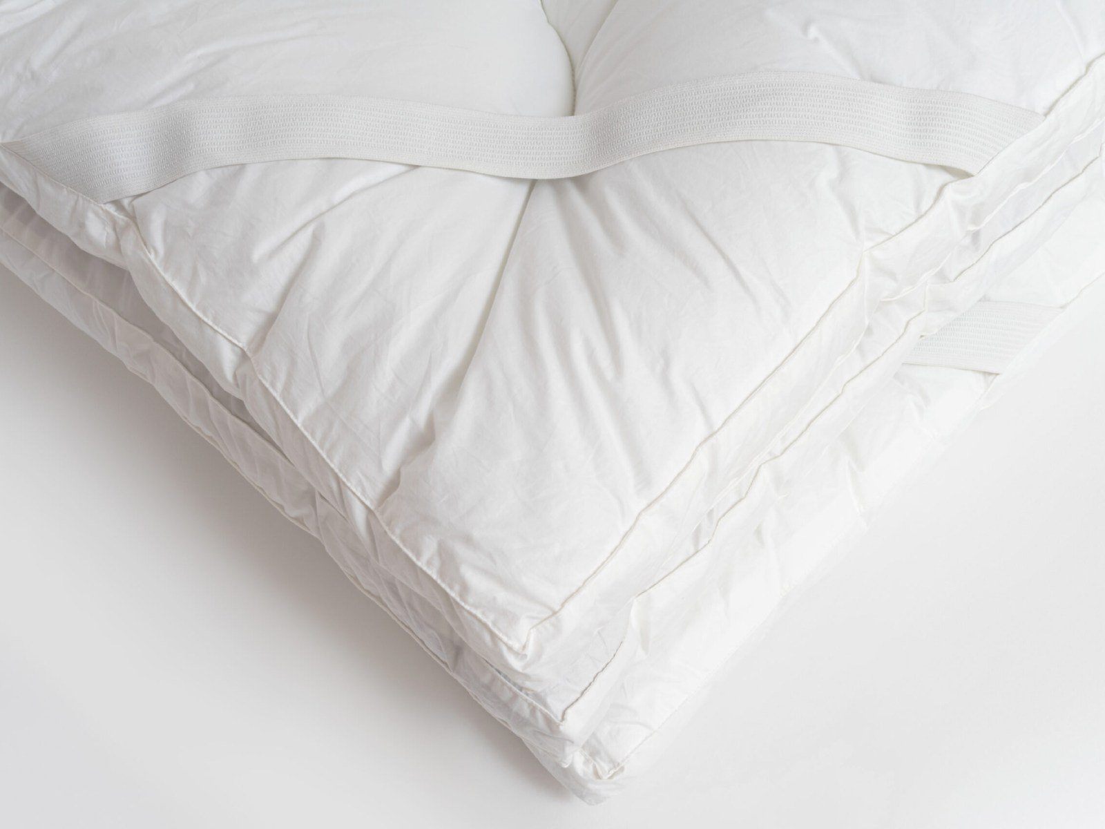 Широкие резинки по углам надежно закрепляют наматрасник, не позволяя ему сбиваться.