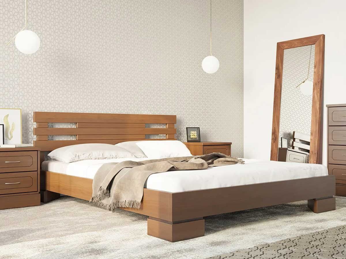 Кровать Варна 1 из массива ясеня изготавливается с изголовьем в стиле модерн.